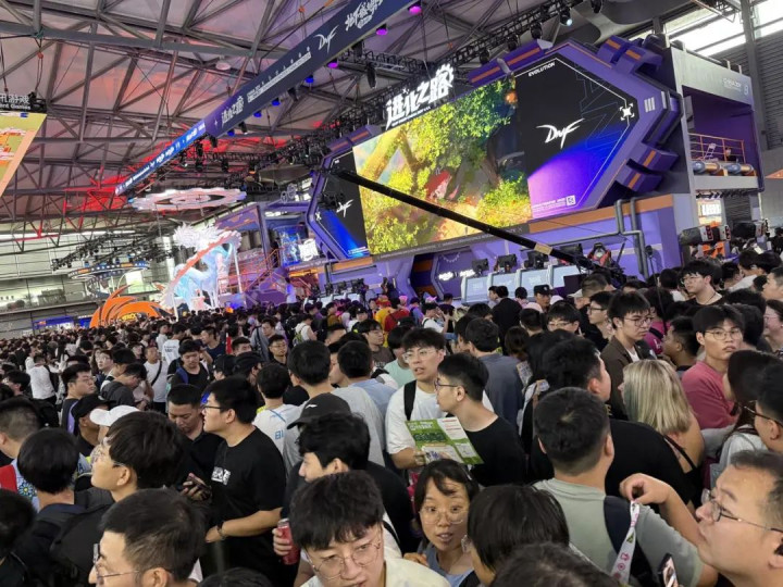 而N4馆的人流数量也断层式领先——开馆后不久,它就开始限制只出不进;为了保证观众流通,保安们还手牵手临时组成人墙,分开腾讯游戏和其他公司展台。如果身在其中,观众基本只能努力人挤人了。