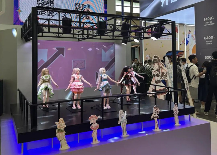 此外,另一个展位上有企业展出了以AI驱动的“机器娃娃”,而在这些娃娃舞蹈表演期间也吸引了不少观众驻足。