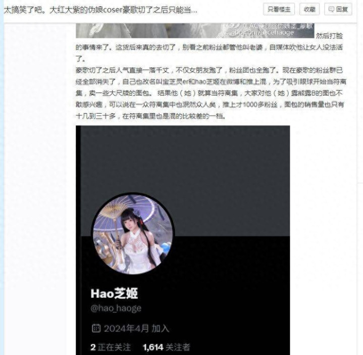 网友爆料: 曾经红到日本的伪娘coser豪哥, 在切了后毫无人气