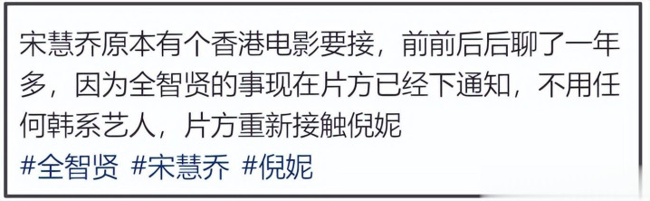 在中国,宋慧乔拥有一定的路人盘,只要限韩令的口子稍微松一点,来捞金不是奢望,毕竟稍微有点人气的韩星爱豆都能在内地开签售会。但偏偏全智贤辱华风波闹大了,转机直接变成危机。当然,目前这个爆料无法证实真伪,但观看舆论反应,中国网友表示喜闻乐见,支持限韩令限到底。