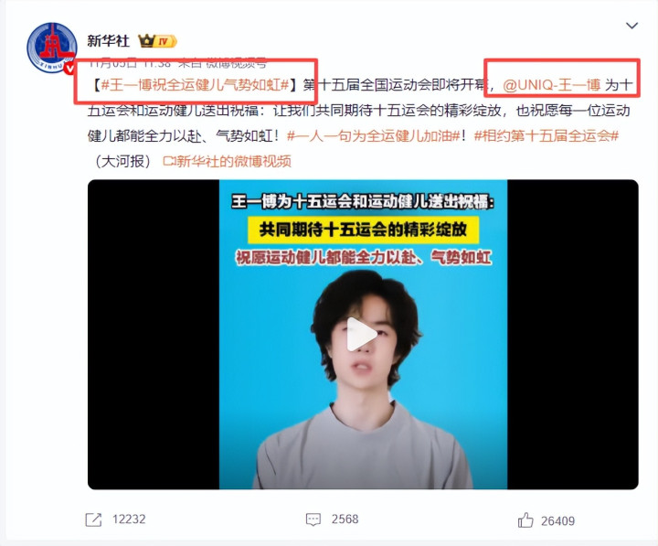 新华社|王一博祝全运健儿气势如虹