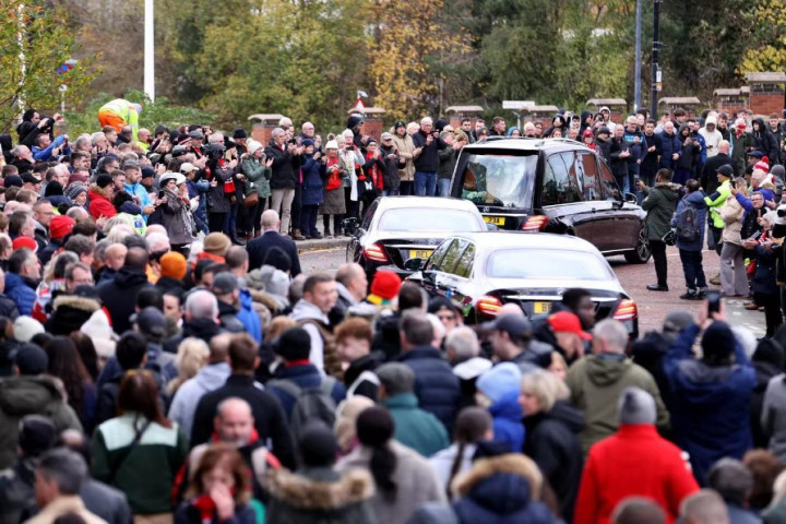 曼联队的一众球员,身着黑色西装,肃穆而庄重地抵达现场,眼神中充满了悲伤和敬意。这些球员曾是他的战友、他的兄弟,一起领略过胜利的喜悦,一同面对挑战的坚毅。他们默默地站在棺木前,心中只有对这位传奇的怀念,对他的伟大传奇的缅怀。
