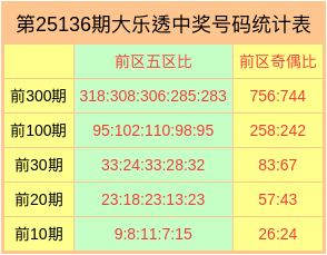 奇偶数据分析:上期前区奇偶号分别开出0枚和5枚,偶数号码相对偏热,前10期前区奇偶号分别开出27枚和23枚,奇数号码相对偏热,本期重点关注奇数号码热出,预计开出3枚。